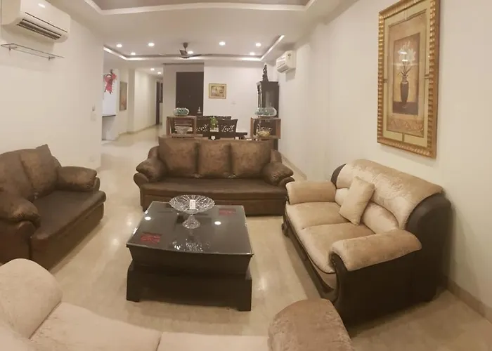 Exotic Pleasure apartment is located a 15-minute drive to the 73m tapering Qutub Minar Tower and offers accommodation with free Wi-Fi in the rooms. The venue has a kitchen fitted with dishwasher and kitchenware.