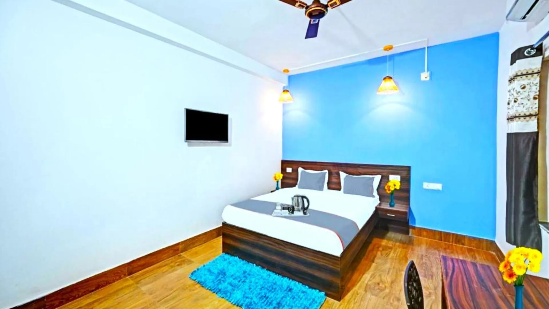 Goroomgo Madison Blue Kiit University Patia Bhubaneswar - Luxury Collection Of Hotels With Spacious Room - Best Hotel In Bhubaneswar offers rooms with a patio and a dressing area featuring air conditioning, along with a flat-screen TV with satellite channels. Furnished with a writing table, they also have sound-proofed windows. Bathrooms are equipped with a bidet, a roll-in shower, and a separate toilet, as well as comforts such as shower caps and towels.