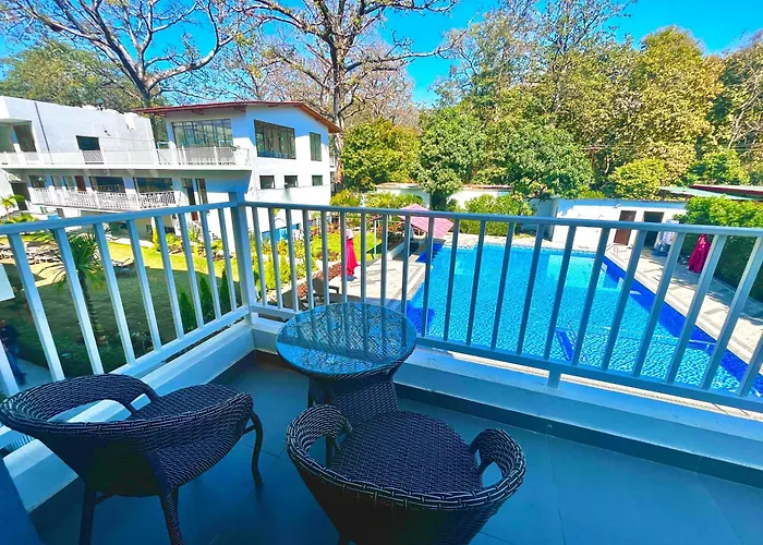 The 4-star Jungle Woods Resort, Jim Corbett - A Boutique Hidden Gem Ramnagar has 9 rooms and is located 103 km from Corbett Tiger Reserve.